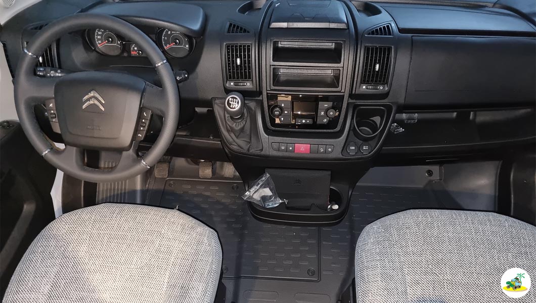 - Optional Pacchetto Chassis Citroen che prevede le luci diurne a led, volante multifunzione rivestito in pelle come il pomello del cambio, climatizzatore automatico in cabina, serbatoio di recupero acqua grigia isolato, Isofix per seggiolino su 3 e 4 posto, finestra aggiunta in bagno, cerchi in lega 16” verniciati neri