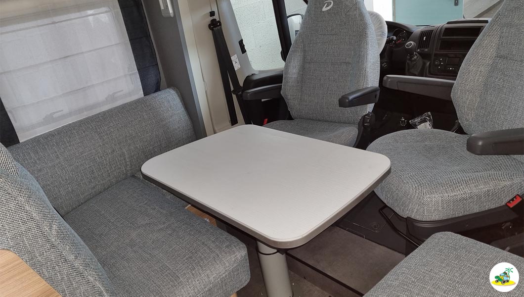 - Descrizione Semintegrale Dethleffs su meccanica Citroen Jumper Light dalle dimensioni compatte con letto posteriore gemello unificabile in grande matrimoniale king size, la dinette avanzata viene completata dai sedili girevoli della cabina, cucina ad angolo con frigorifero alto trivalente, bagno e doccia nello stesso ambiente separati da una porta girevole, porta entrata cellula allargata cm. 70 con zanzariera