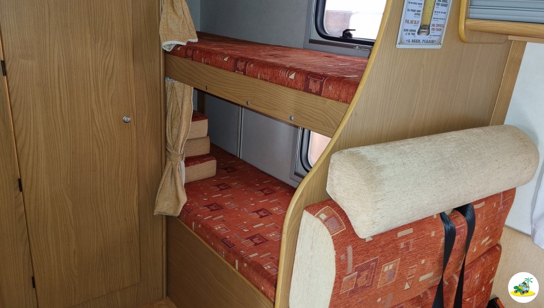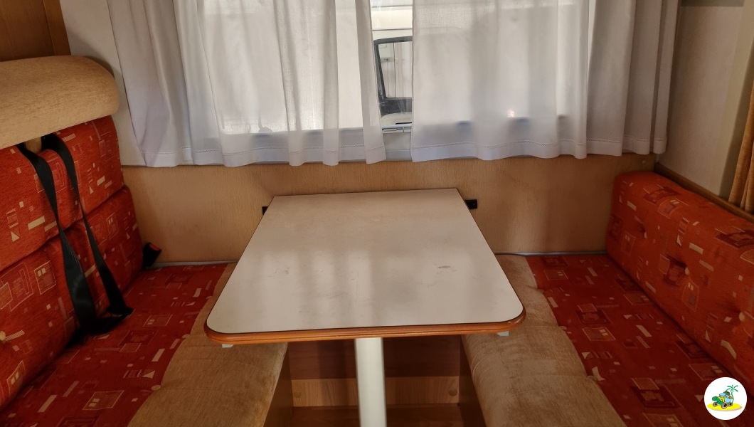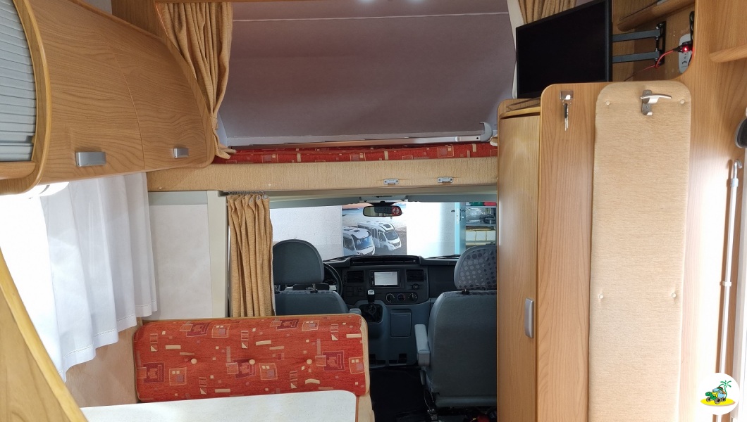 - Descrizione Mansardato usato in ottime condizioni, 6 posti letto e viaggio, letto a castello laterale posteriore con gavone variabile sottostante ed accesso da portellone esterno, bagno in coda e doccia separata dotata di oblò ed anche finestra, armadio alto per vestiario, cucina lineare servita di banco lavoro, piano cottura a 3 fuochi, pensili per comodo stivaggio, frigorifero 90 lt. trivalente, la dinette è classica a sedili contrapposti e trasformabile in un ulteriore letto matrimoniale, condizionatore in cellula (Dometic) ed anche in cabina, radio doppio DIN, riscaldamento con Combi 6 Truma gas